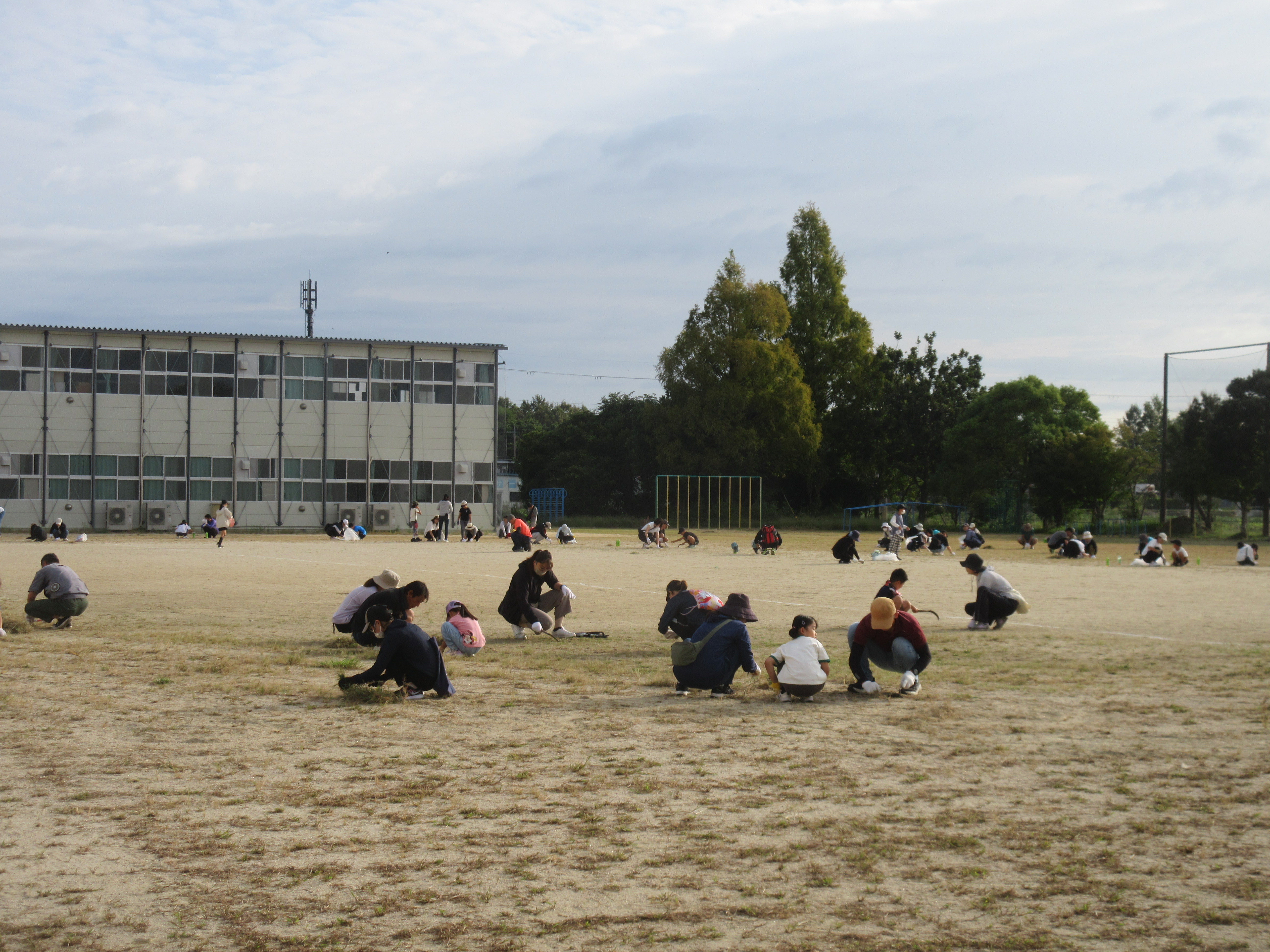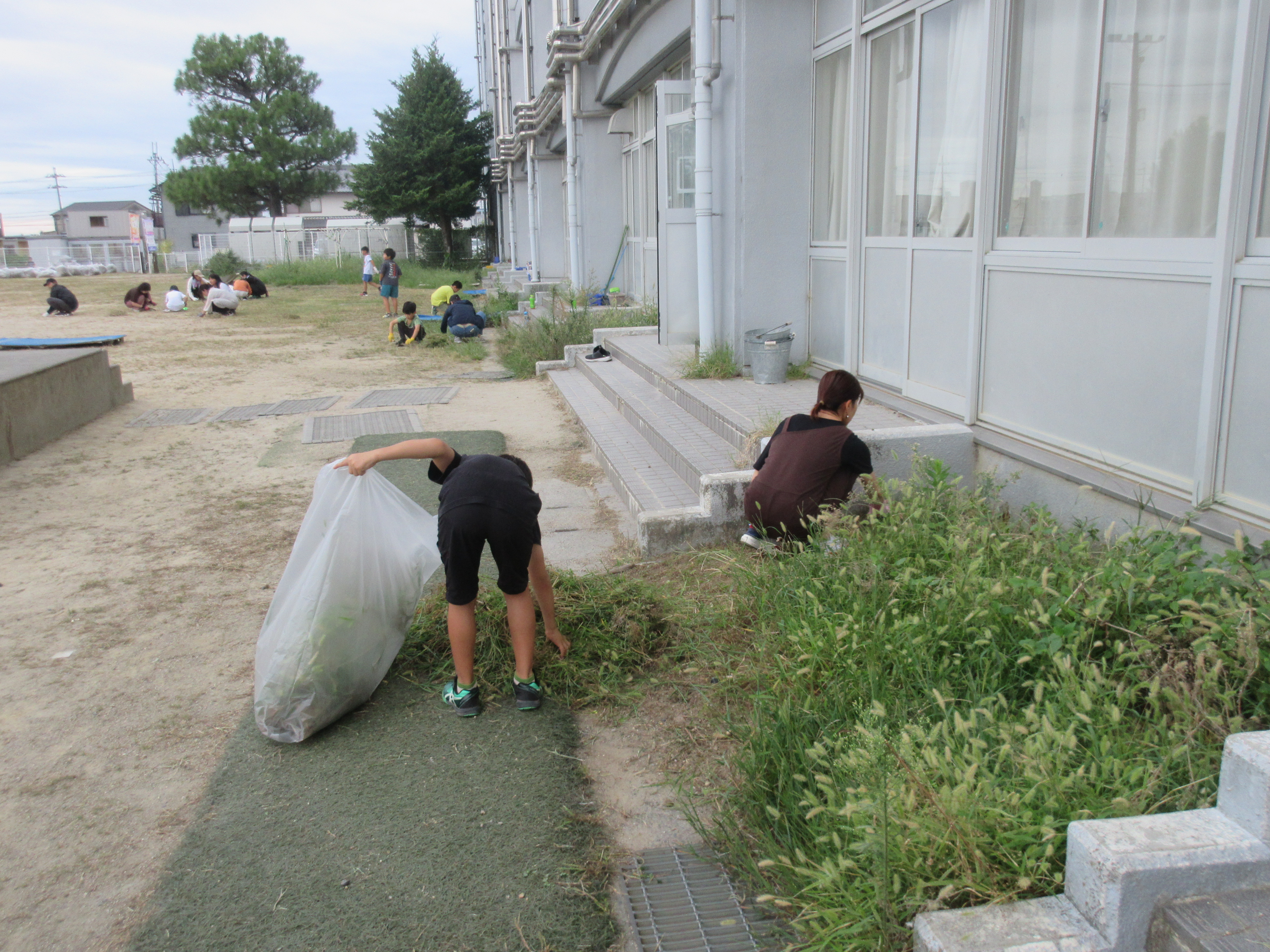 9月23日(祝)の早朝7:30〜と9月24日(水)の夕方17:00〜の2回に分けて、はやのっ子サポーター主催の「雑草ポイポイプロジェクト」が開催されました。 23日は175名、24日は79名の事前申し込みがあり、両日で約250名の保護者、児童、教職員が運動場の雑草を刈り取る作業に取り組みました。 「できるとき、できるひとが、できることを」というコンセプトのもとに、子どもたちのために、学校のためになる活動をと、いろいろ考えて提案してくださるはやのっ子サポーターの事務局の方々のおかげで、夏の間ぼうぼうに伸びた運動場の雑草が、1時間の作業後にはかなり除去されました。やはり、人の手による取組は人数の多さが効果に直結します。時間を割いて参加してくださった保護者の皆様、子どもたちに心から感謝申し上げます。 また、除草作業に鑑み、事前に「草なぎくん」という機械を借りて予め運動場の雑草を軽く刈り取る作業を、地域の方(水保の今井様、開発の岡本様)がボランティアでしてくださっています。ありがとうございます。 10月29日の運動会に向けて、運動場での練習も始まります。たくさんの保護者、子どもたちのご参加で今回の除草作業が大変進みましたこと、本当にありがとうございました。今後とも、よろしくお願いいたします。 |
