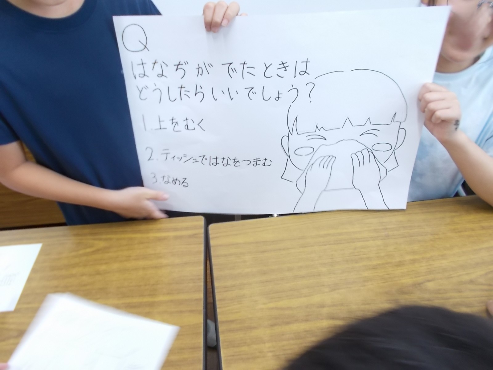 保健給食委員会が健康に関するクイズを解いていくスタンプラリーを低・中・高学年別に3日間にわたり開催しました。 |
