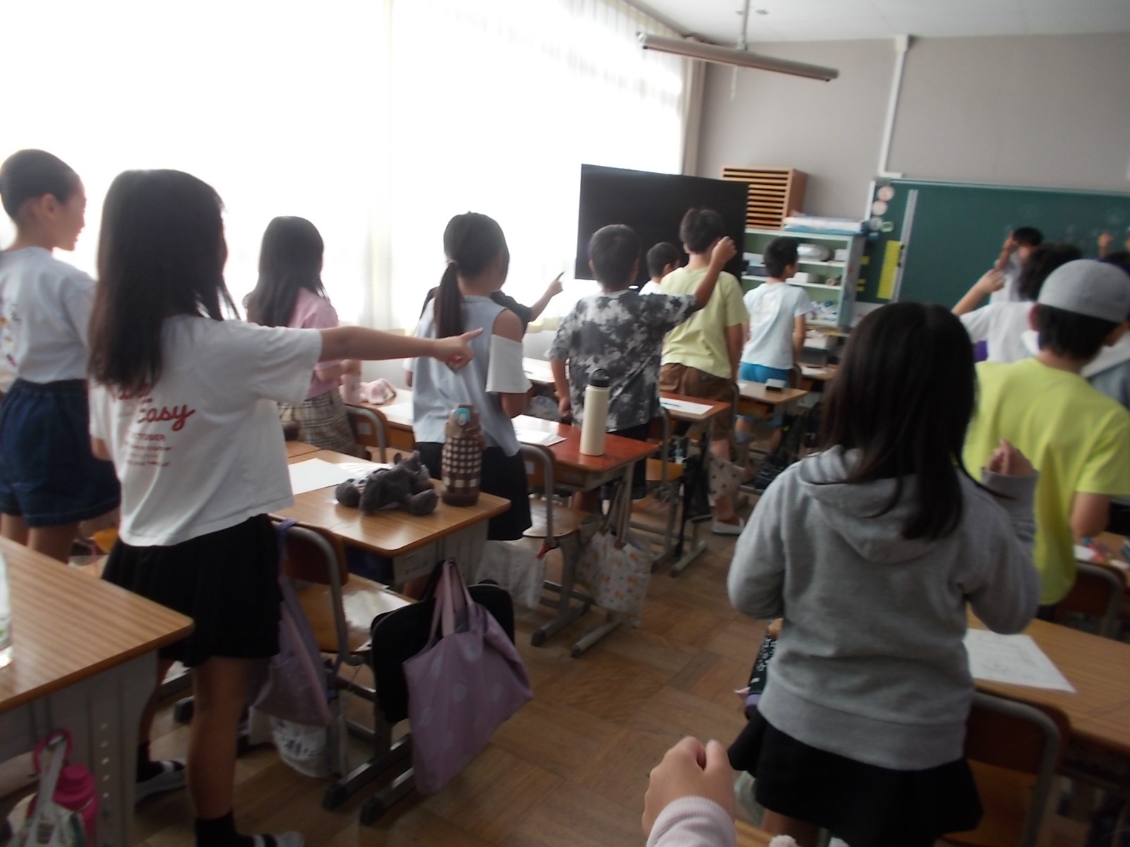 今日から朝の時間に5・6年生の各色応援団が他学年の各クラスに入っての応援練習が始まりました。どんな掛け声、どんな振り付けで応援するかを説明し、声を合わせて練習しました。各教室から元気な子どもたちの声が響いていました。 |