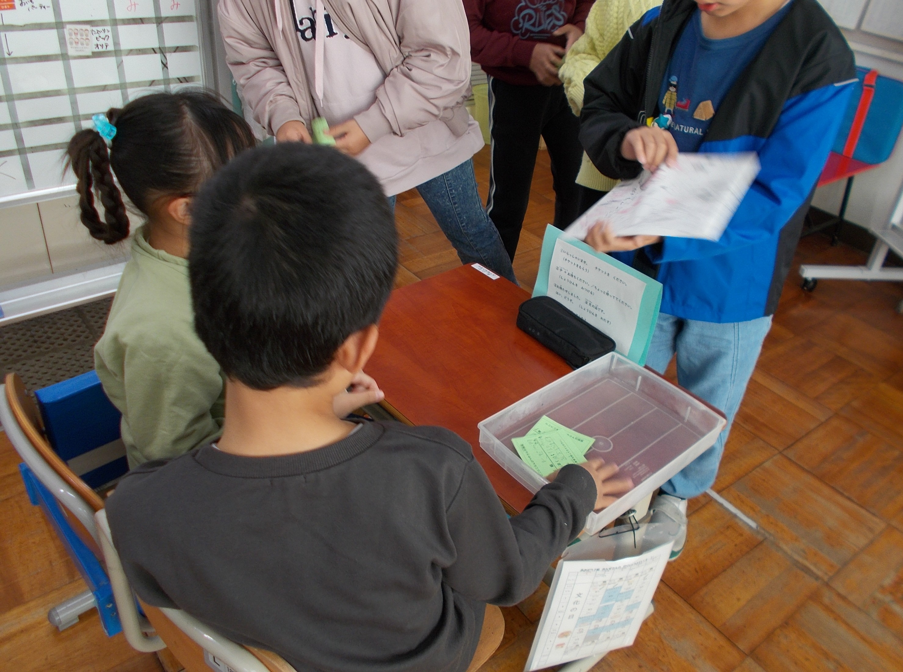 毎月第1火曜日は校内人権の日です。この日は、「へいわって すてきだね」という長谷川義史さんが書いた絵本の読み聞かせを大型モニターで視聴した後、学級で平和について話し合いました。お話の中で「へいわってなにかな。ぼくはかんがえたよ。」という一文があり、子どもたちもそれぞれに自分が思う平和について考えました。4年生の教室を覗くと、「戦争がない」「人が死なない」「危険なものがない」「いじめがない」「犯罪がない」「不審者がいない」「事故がない」「災害がない」など、様々な意見が出てきました。そして、最後に平和が続くように自分ができることを考えて人権の日の時間が終わりました。 |